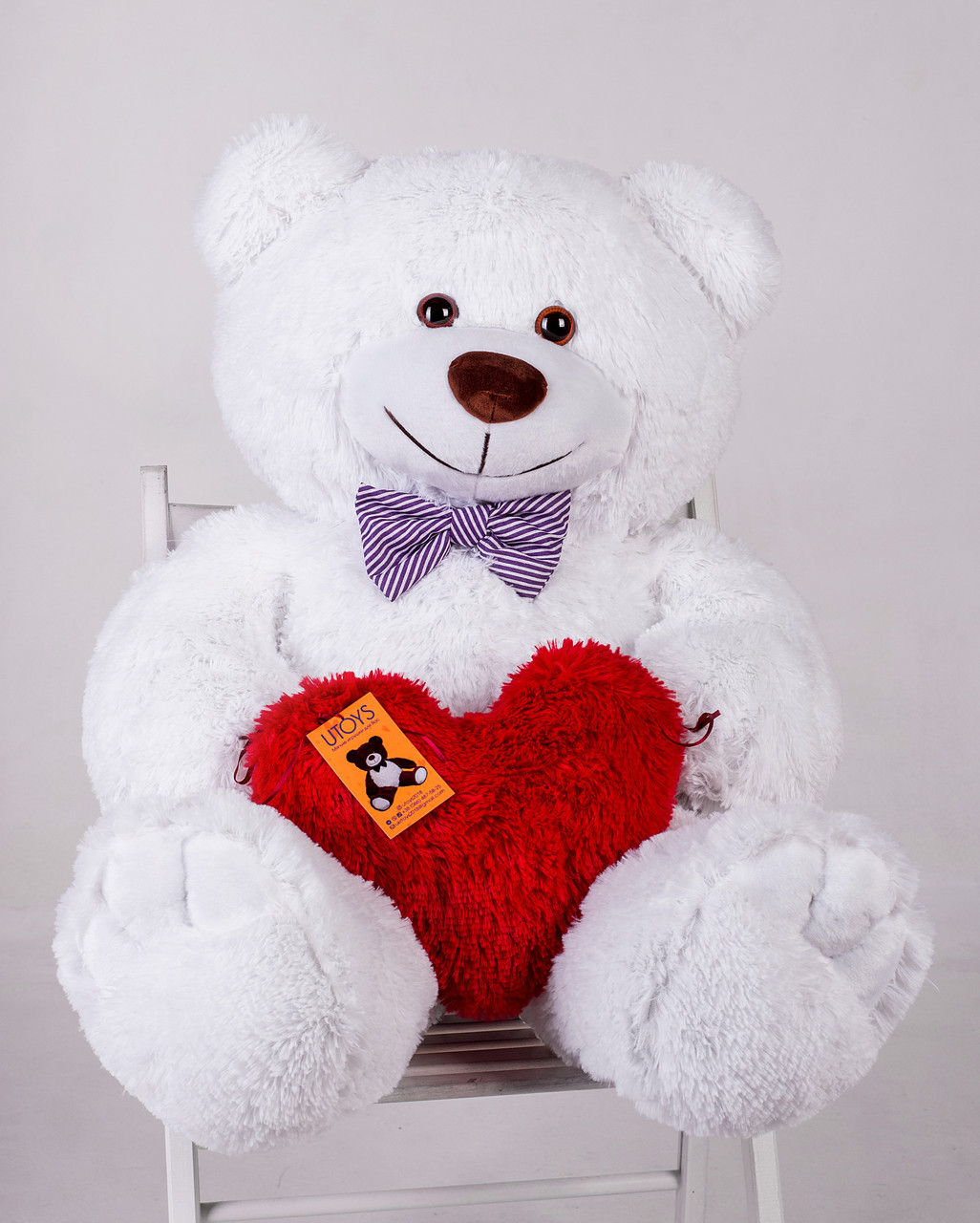 Мишко з сердечком Yarokuz Джон 110 см Білий подарунок